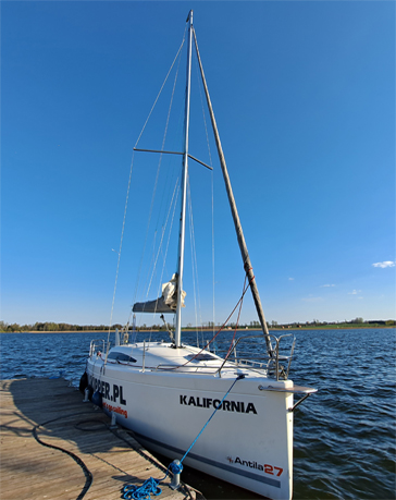 Zapraszamy Państwa na niezapomniane rejsy Wielkimi Jeziorami Mazurskimi najszybszym jachtem turystycznym Antila 27. Zbudowany w 2014r. Wygodny na 8 osób, 3 ODDZIELNE ZAMYKANE KABINY na rufie i dziobie,