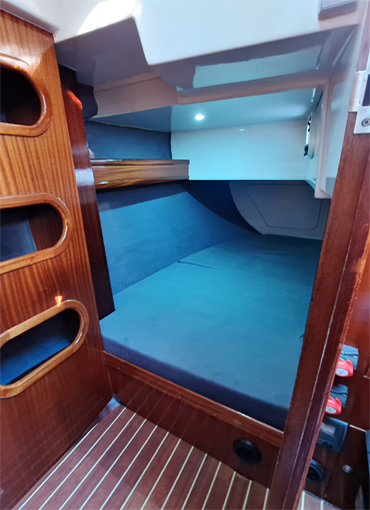 Jacht jest dodatkowo wyposażony w szpryc budę. Podczas niepogody rozrywkę zapewni system audio.